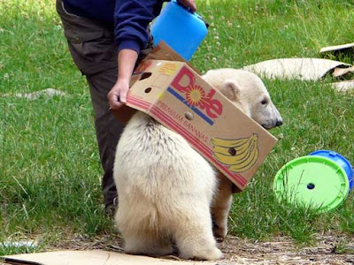 She had so many questions. When she was older and her own knuputer was placed in her enclosure (everybody seemed to think she had to have one as Knut had one too), she found the video on the Internet which showed her with her real mum who was carrying her outside the den. Her mum seemed to be nervous and let her fall several times. No, not intentionally, as she could see that when her mum carried her in her mouth, she did that quite carefully. Maybe too carefully? Who knows?