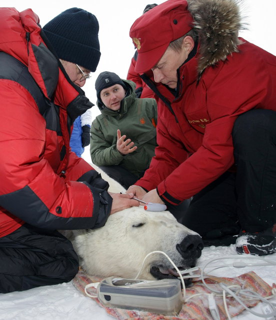 "Habitation is getting more and more difficult because of the melting ice caps. It is important for us to know the movements of the polar bear, how it reproduces and how it rears its young," Putin said.