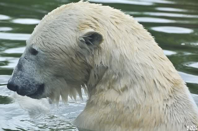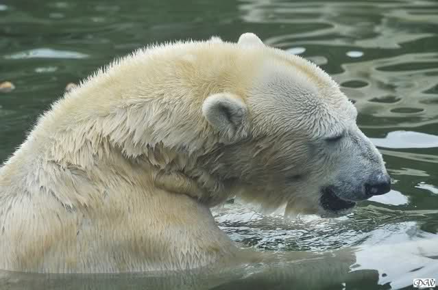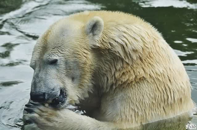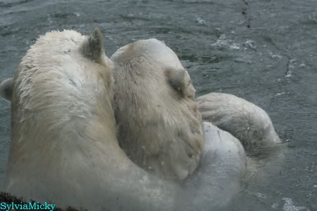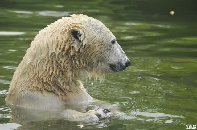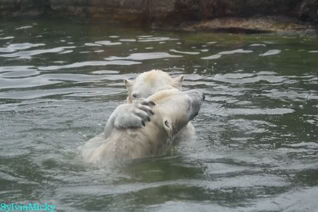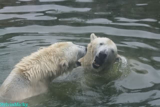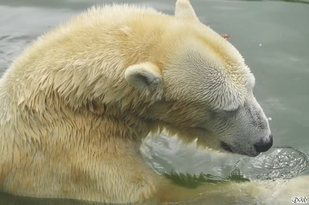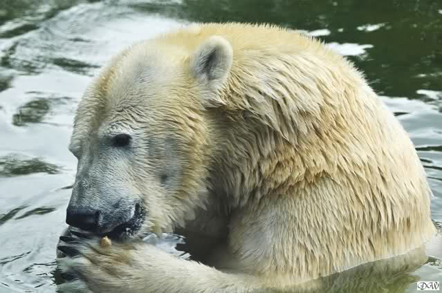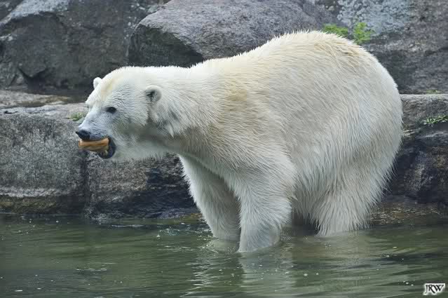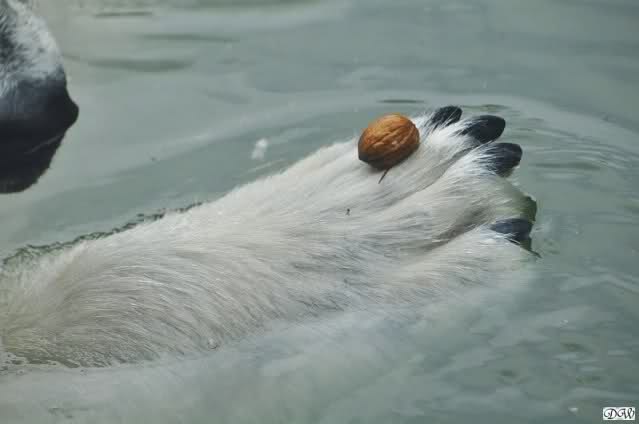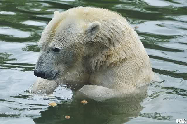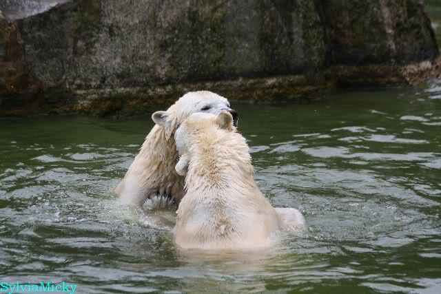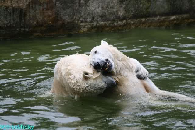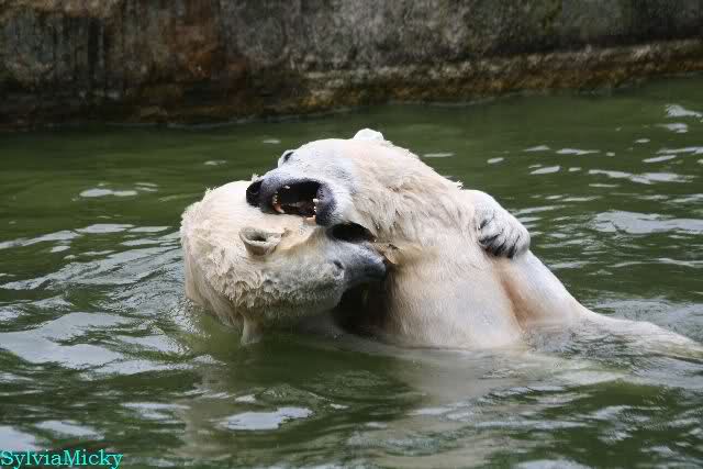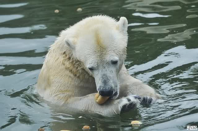 Übermütig spielt am Montag (22.03.1999) Eisbär "Lars" mit einem Plastikkanister im Wasserbecken seines Geheges im Tierpark Neumünster. Das sechs Jahre alte und rund 800 Kilogramm schwere Raubtier geht lieber seinem Spiel- als seinem Fortpflanzungstrieb nach. Vor zwei Jahren kam "Lars" aus München um zusammen mit der 26jährigen "Moskwa" für Nachwuchs zu sorgen. dpa