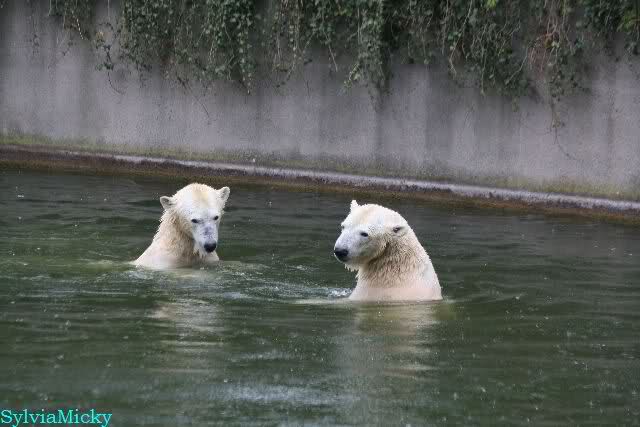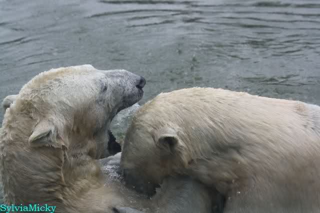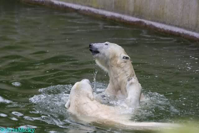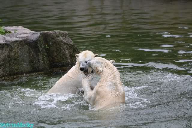 Am Vormittag spielten Tosca und Nancy sehr lange im Wasser.