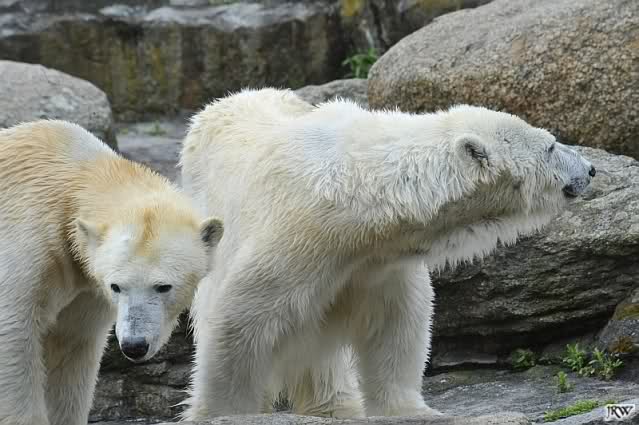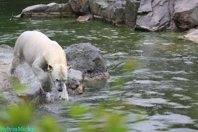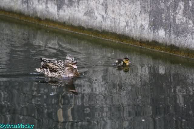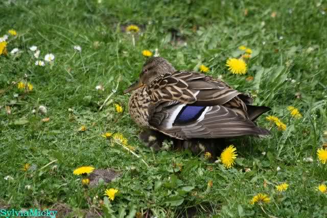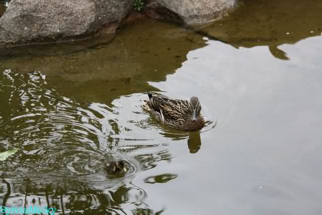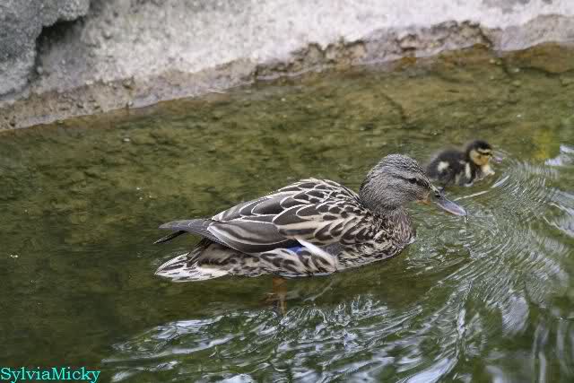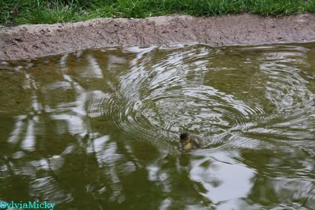 Heute Nachmittag wurde der Krater von Siddy zugeschüttet. Eine Entenmutter hielt sich mit den Küken wieder auf der Braunbärenanlage auf.