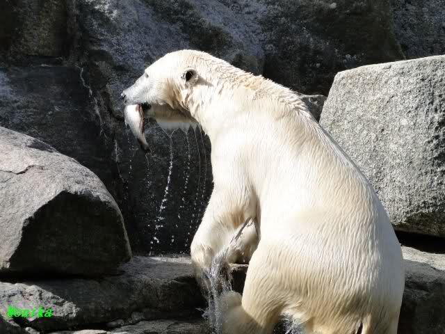 Du schreibst, dass eine Kindergruppe Brötchen und Nüsse ins Wasser geworfen hat. War denn da ein Zoomitarbeiter dabei? Es ist doch bestimmt nicht erlaubt, einfach Futter ins Wasser zu werfen. Ich finde das ehrlich gesagt auch etwas gefährlich für die Bären.