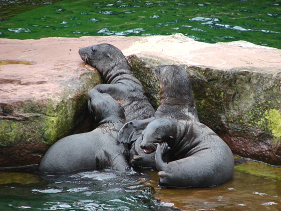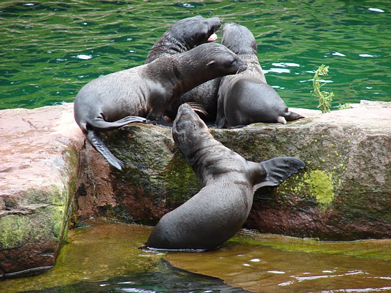 Und im Moment gibt es im Aquapark vier kleine Seelöwen, die sind ganz entzückend. Noch unbeholfen, aber schon richtig frech