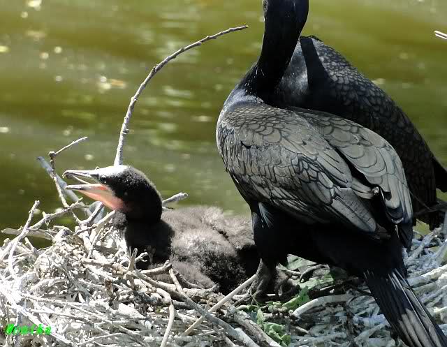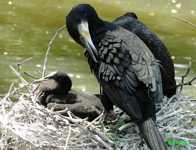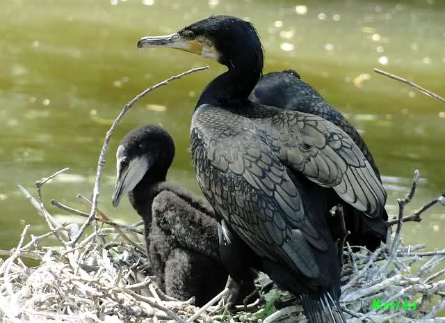 Der erste Nachwuchs bei den Kormoranen. Das Kleine ist noch ganz flauschig.