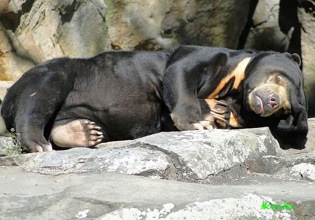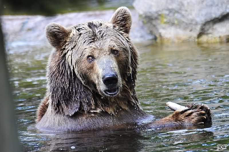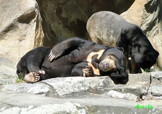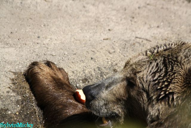 Siddy's Tunnel ist noch da. Die beiden Bären werden jetzt meistens separat gefüttert. Nur so bekommt Petzi etwas ab. Sie hat zur Zeit sehr große Angst vor ihrer Tochter und verschwindet schnell in der Höhle wenn sie in ihre Richtung läuft