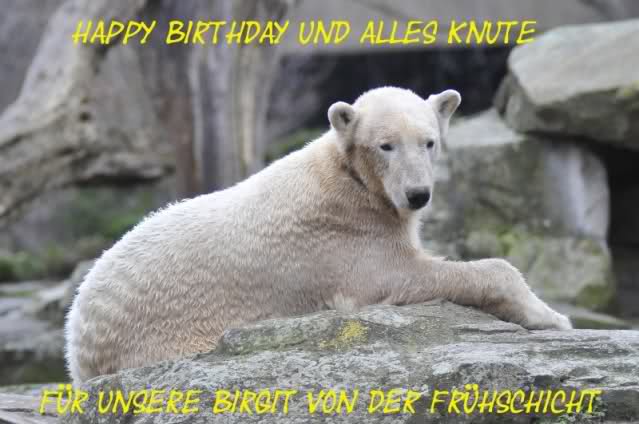 Also Birgit, alles Gute zum Geburtstag auch von mir. Mögen alle Deine Wünsche in Erfüllung gehen. Besonders die in Sachen Knut.