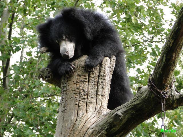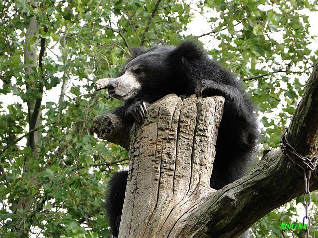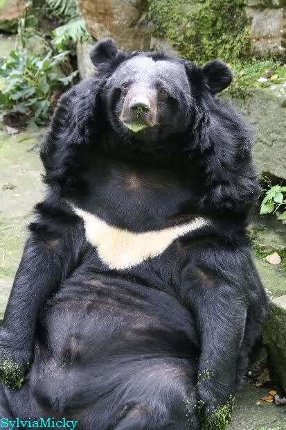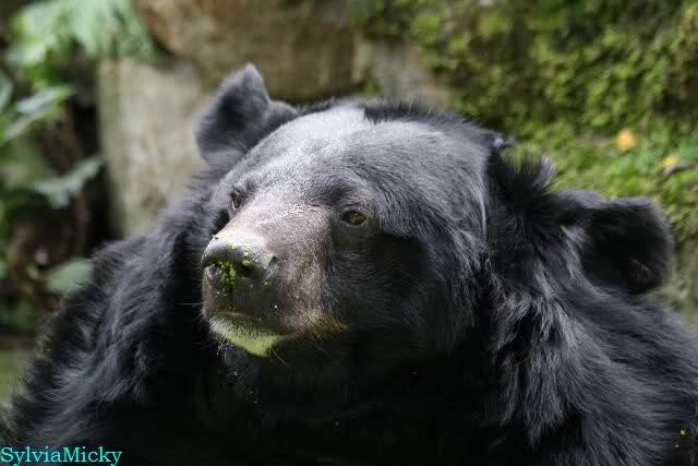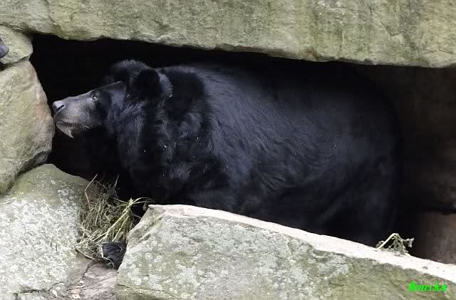 Der Kragenbär spielte eine ganze Weile mit dem Grünzeug. Dann verteilte er es auf dem Boden in seiner Höhle und legte sich darauf schlafen.