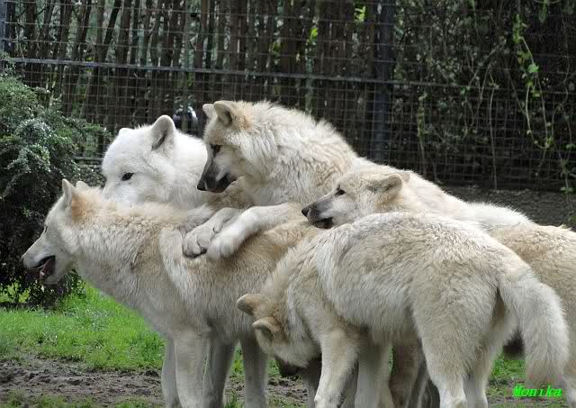 Die Wölfe waren in Spiellaune und rannten über die Wiese.