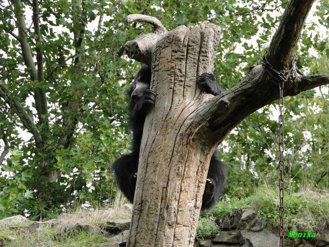 Das Bonoboweibchen hatte alle Pfoten zu tun, Kivu von dem Baby fern zu halten. Kivu ist ganz schön grob zu dem Kleinen