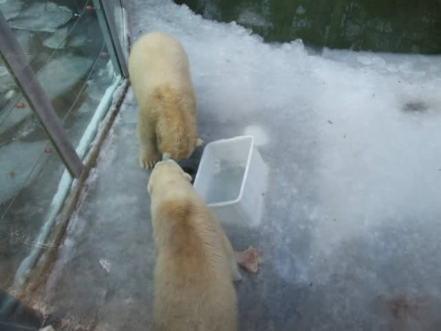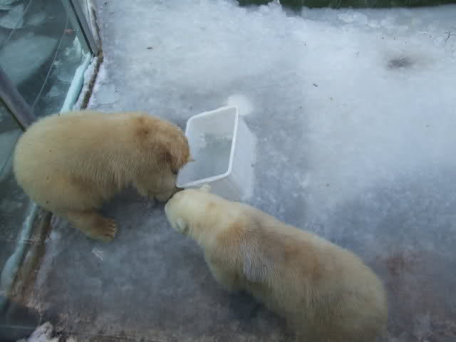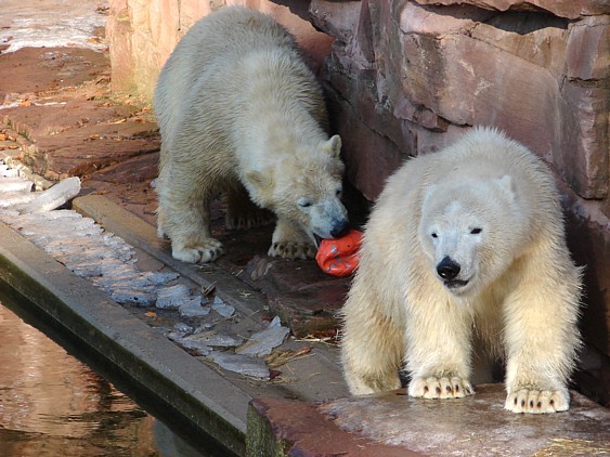 Schöne Bilder, die Anlage sieht jetzt ganz anders aus als bei unserem Besuch vor ein paar Wochen; kein Eis mehr auf dem Wasser, das Spielzeug nicht mehr eingefroren. Die beiden Bärchen fühlen sich ganz wohl!