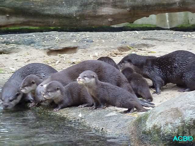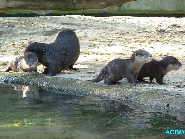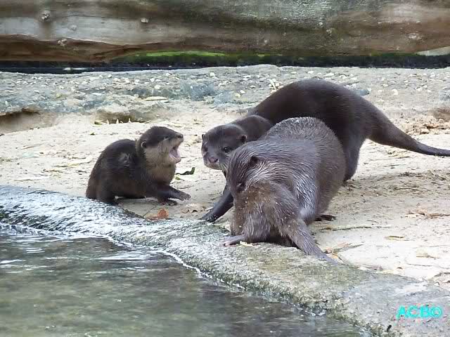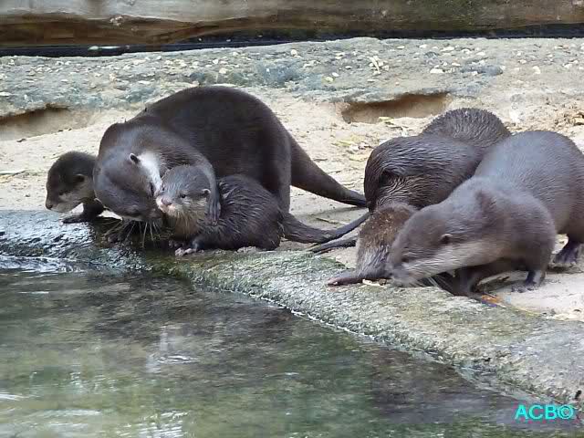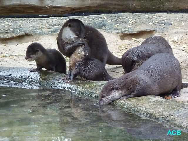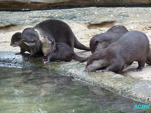 Bei den Fischottern ist zur Zeit viel Gewusel! Vier "Minis" tummeln sich mit den Großen auf der Anlage, und die haben viel zu tun.