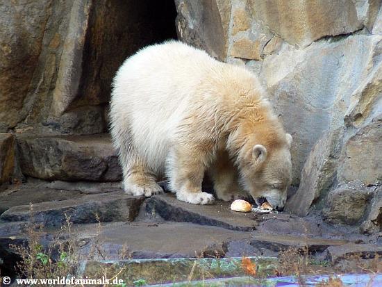 Während Knut schlief, bekamen seine Eltern und seine Verwandtschaft Futter. Die Fütterung der großen Eisbären unter: