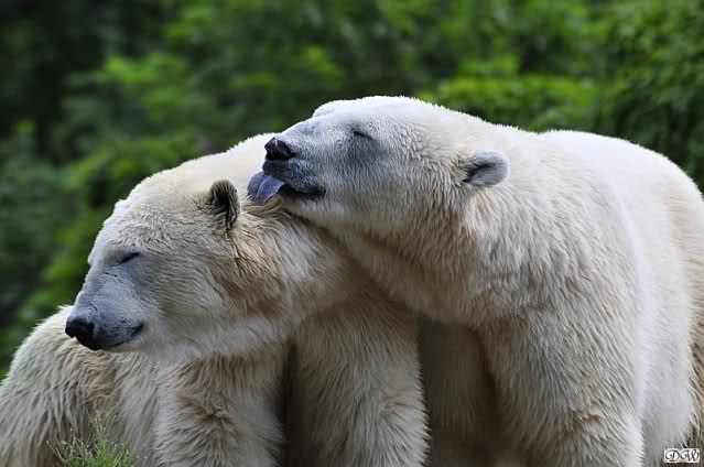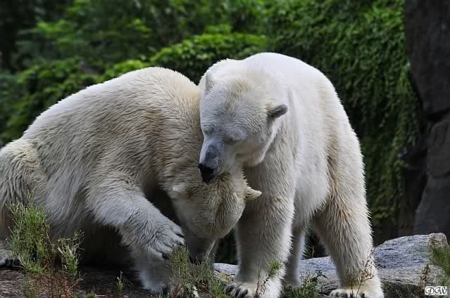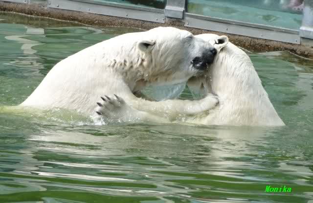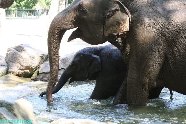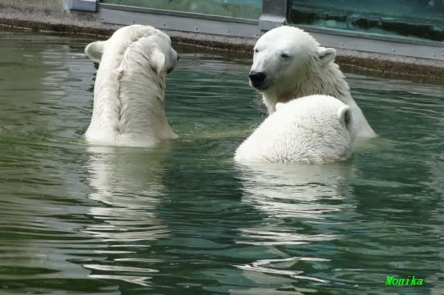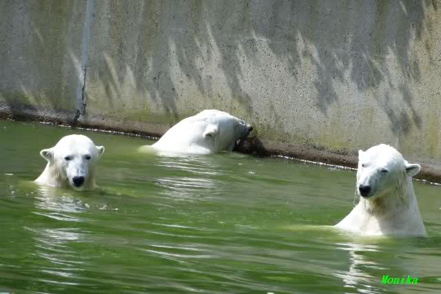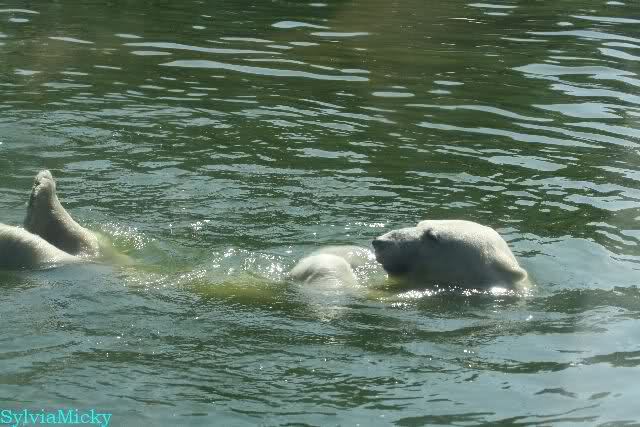Wie schön, dass sie zusammenbleiben dürfen. Wenn sie mit sich selbst beschäftigt sind, werden sie den Kleinen nicht zu sehr erschrecken. Vielleicht wirft Tosca ihn ja auch mal ins Wasser, wie sie es in den vergangenen Tagen zweimal mit Nancy gemacht hat.