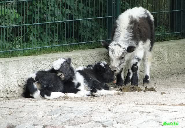 Erneuter Nachwuchs bei den Yaks. Die Zwillinge wurden am 24.07.2010 geboren. Somit gibt es zurzeit vier Jungtiere, die alle im Juli geboren sind.