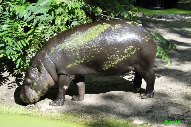 auch das Zwergflußpferd hat Algen in seinem Pool