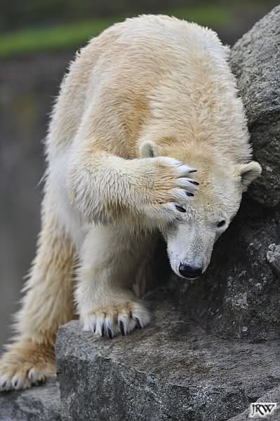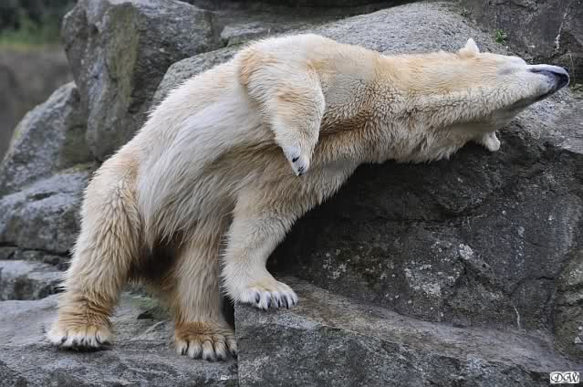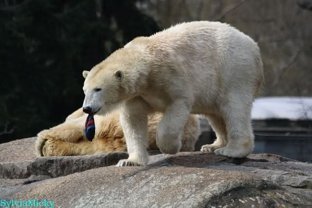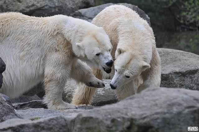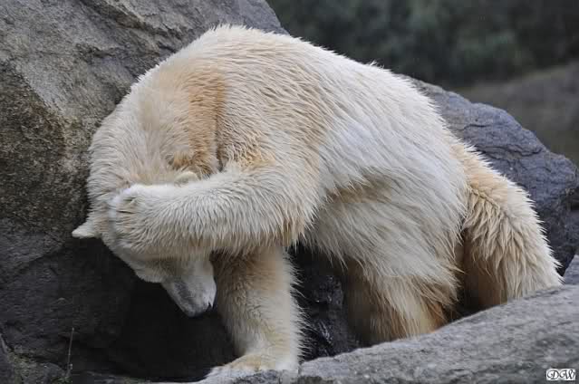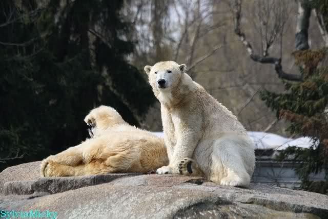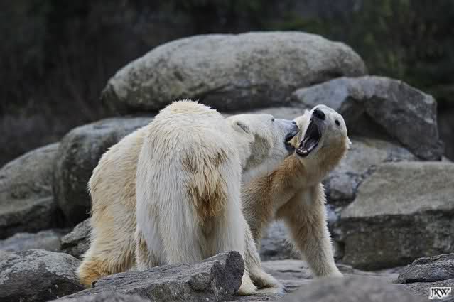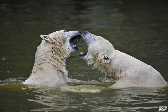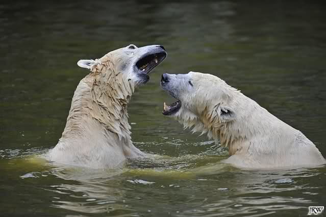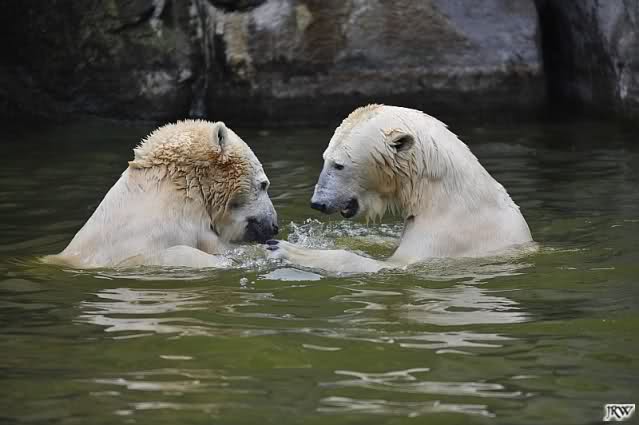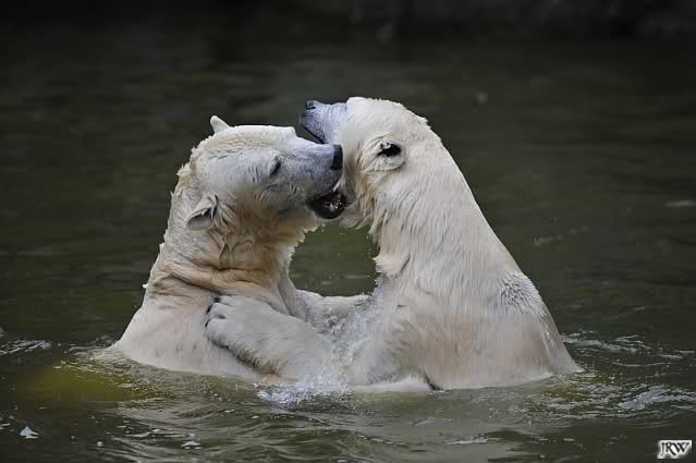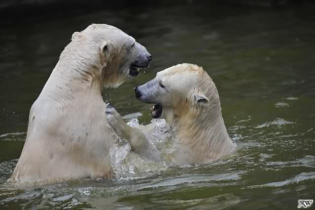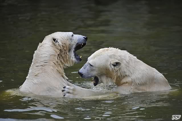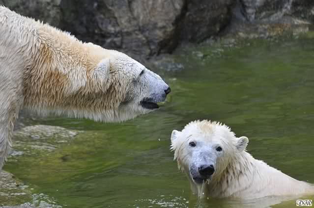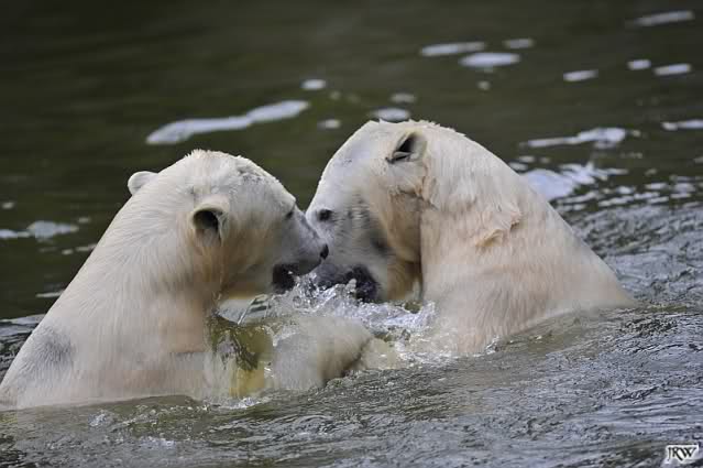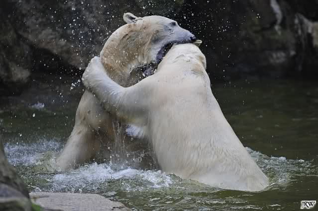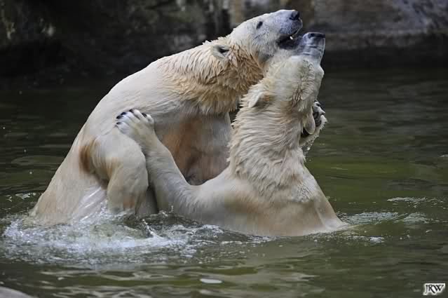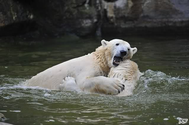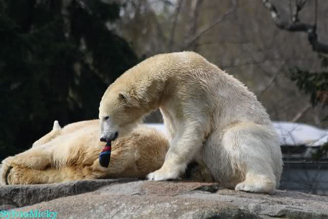 Sylvia, wie gut, dass Du darauf hingewiesen hast, dass die großen Eisbären nicht etwa spielen. Sie machen Wassergymnastik und die Kindermütze haben sie weggeräumt. Ordentliche Eisbären haben wir.