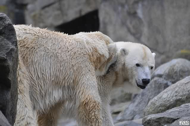 weilbliche Eisbaeren einander weil es koennte ihren Nachwuchs gefaehrden. Aber ohne Nachwuchs und ohne Mannstress scheinen diese intelligente Tiere sehr sozial zu sein und aus rueksichtsvoll.