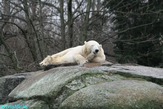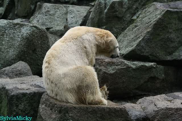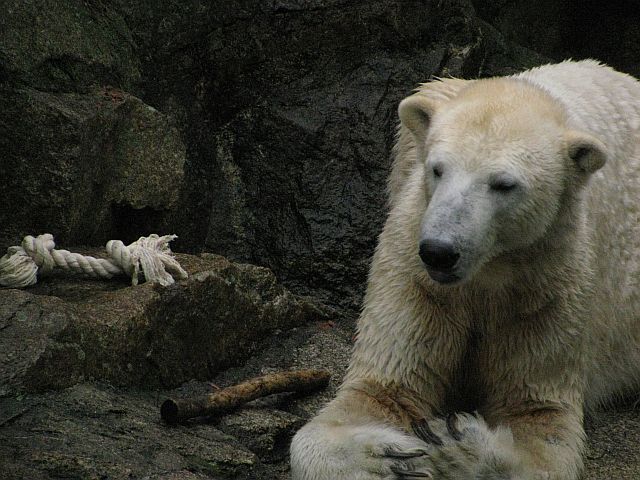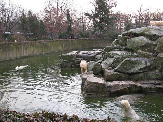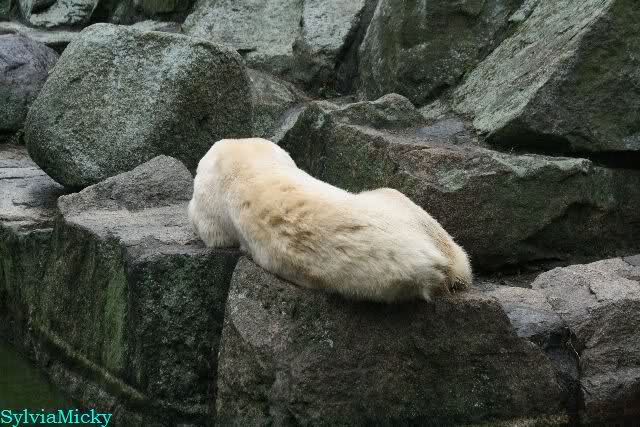 Nach dem Besuch des Affenhauses schlenderten wir nochmals zurück zu Knut. Aber die Eisbären hielten ihre wohlverdiente Mittagsruhe. Wir sahen ihnen eine Weile dabei zu. Dann gingen wir zum Ausgang.