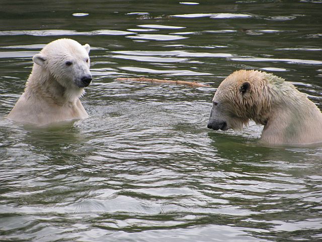 Knut kann es nicht fassen, seine Freundin (und Mutter) Tosca spielt mit Kati im Wasser.