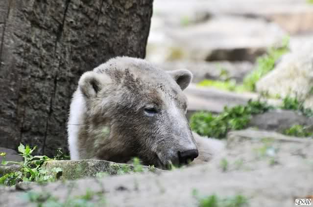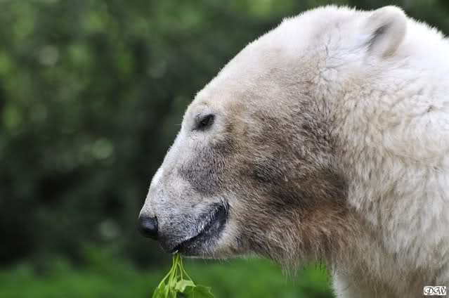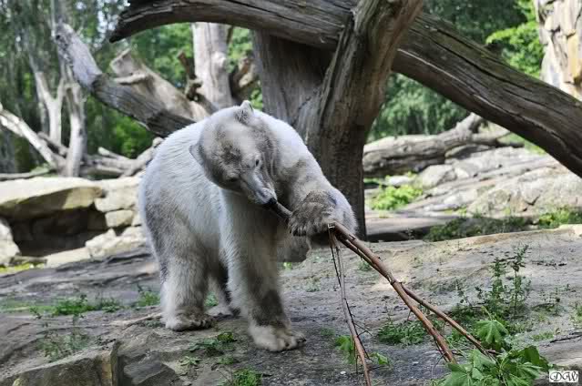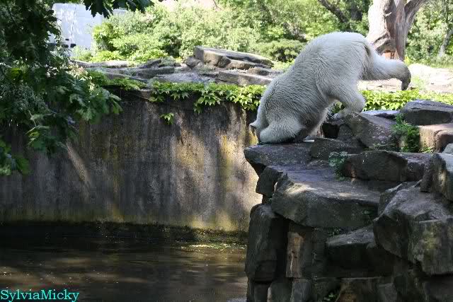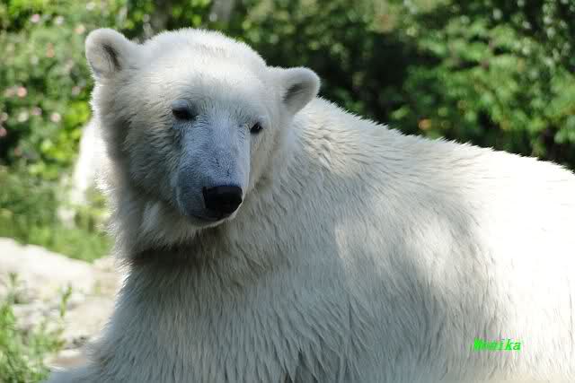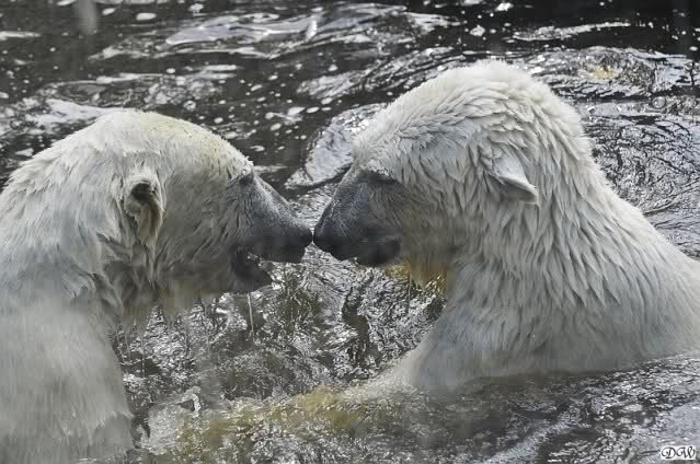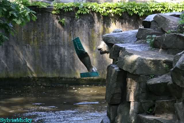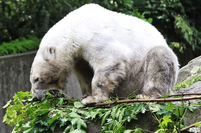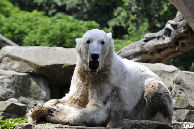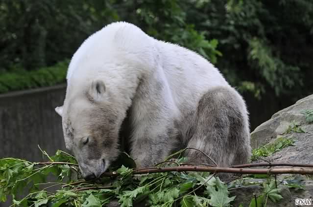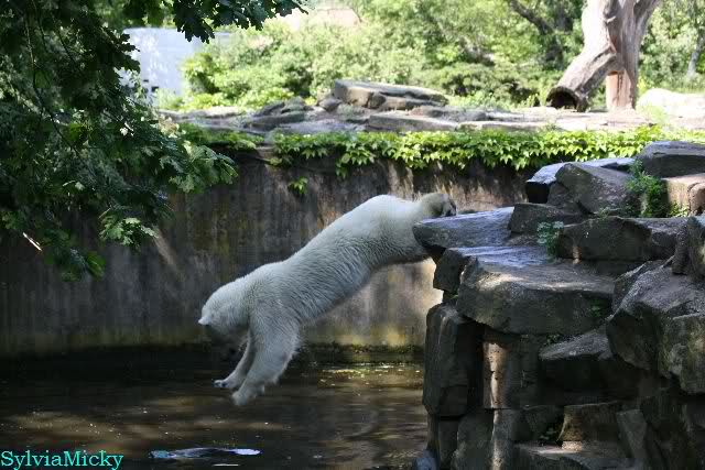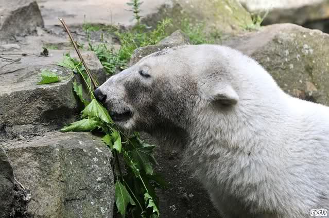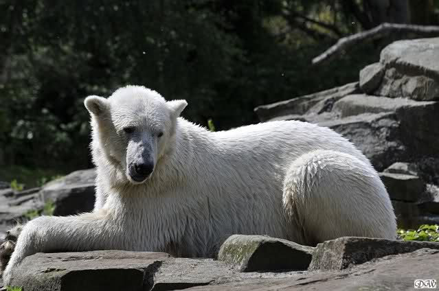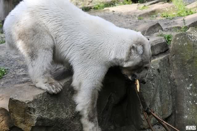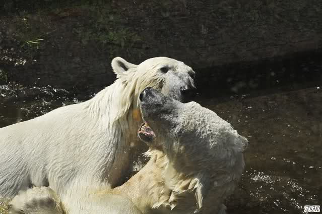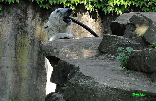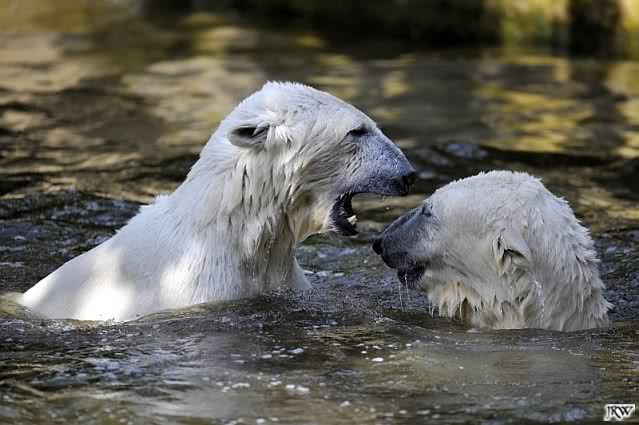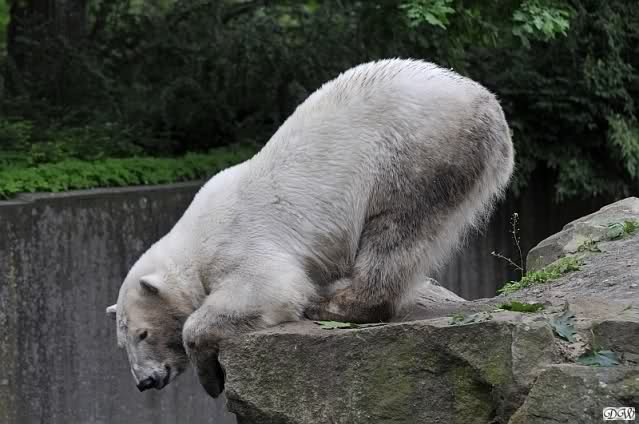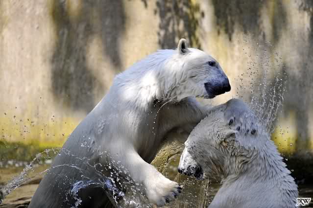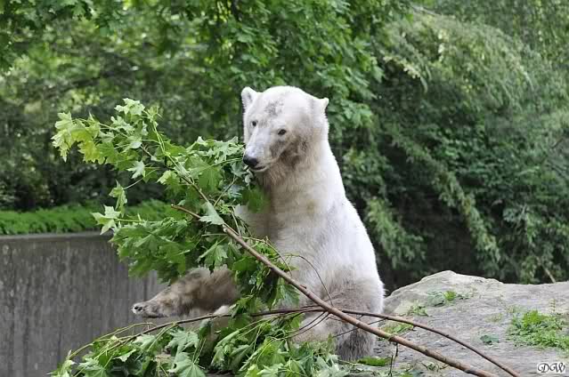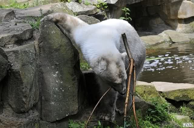 Monika, tolles Bild von Bumi in Knut's Arm. Natürlich habt Ihr Unrecht mit den weißen Bären. Dass sie sich wie wild waschen, könnt Ihr an der dunklen Farbe des Wassers erkennen