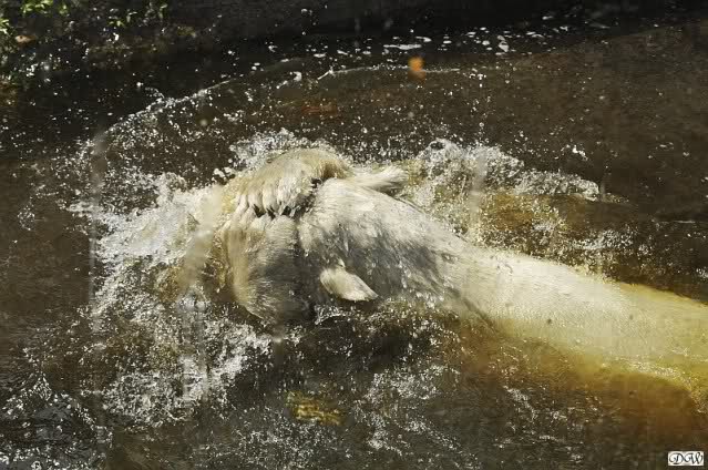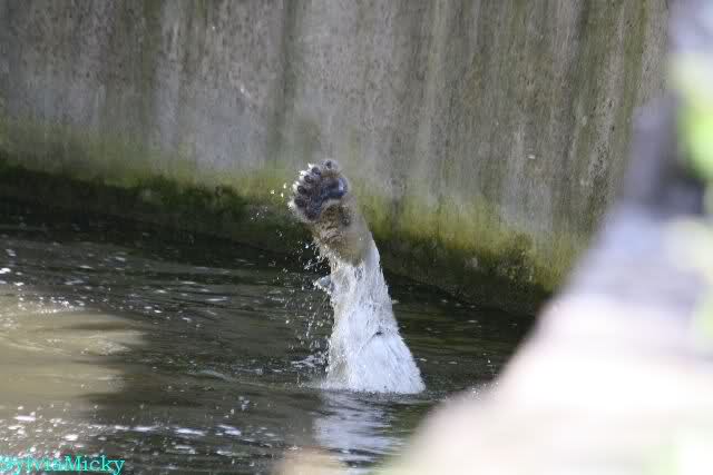 Nach der Fütterung tobten Beide wieder ausgelassen im Wasser. Als ich ging, fing Knut an sich einzuschwärzen.