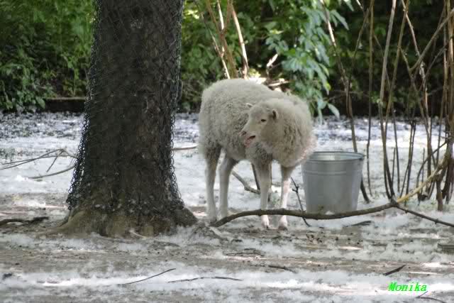 So wie bei den Schafen sah es an einigen Stellen im Zoo aus, als hätte es geschneit. Grund dafür sind die Pappelpollen.