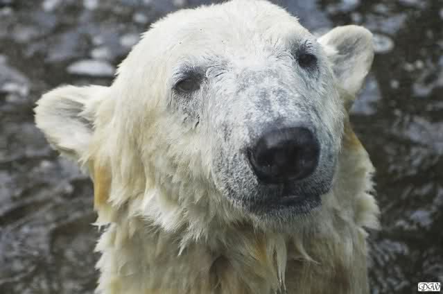 Danke für die Fotoserie von den beiden Bärenkids. Bessonders das eine Portraitfoto gefällt mir sehr. Es zeigt Knuts typischen Gesichtsausdruck, den hat kein anderer Eisbär