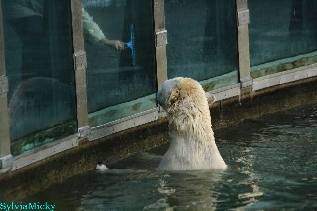 Tosca an der Scheibe. An dieser Stelle noch mal herzlichsten Dank an die nette Knutfreundin, die die Scheiben trocken wischte. Vielleicht kann ihr jemand den Dank weiter geben, da sie kein Internetanschluß hat.