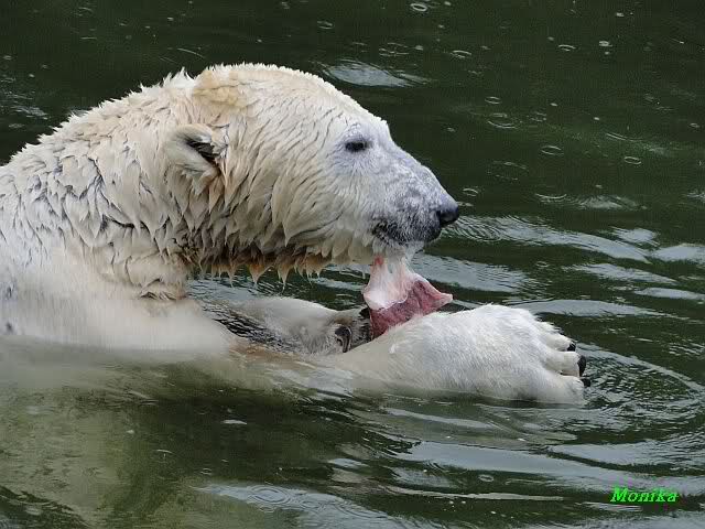 Als ein Stück Fleisch ins Wasser fiel, sprang Knut hinterher.