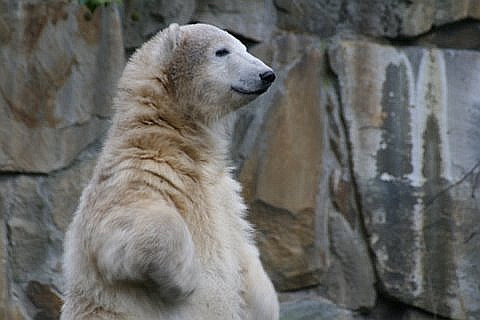 Danke für Deine schönen Fotos! Sie sind Dir wirklich gut gelungen. Besonders gefällt mir das zweite, auf dem Knuti die Tatze hebt, als ob er grüßen will. Das macht er öfter. Von den Amerikanern hat einer geschrieben, Knuti macht den Vulkaniergruß "Lebe lang und in Frieden!"
