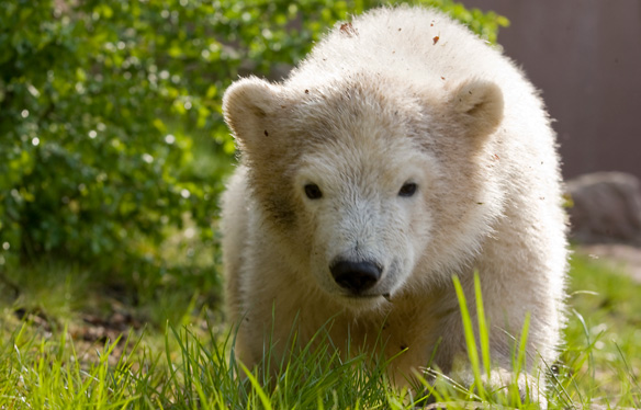 19. Mai 2008: Ein ereignisreiches Wochenende liegt hinter den Nürnbergern: Der Club ist abgestiegen – da half auch der Besuch des Dalai Lama leider nichts. Was soll’s, Flocke tobt weiter munter und vergnügt durchs Freigehege. (Foto: Ralf Schedlbauer)