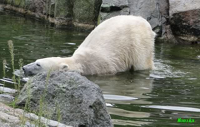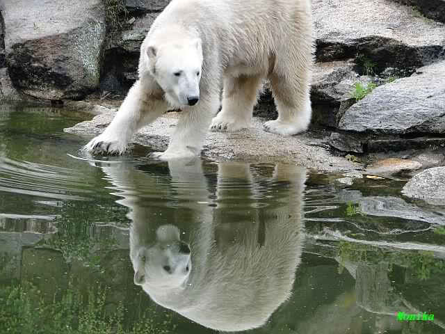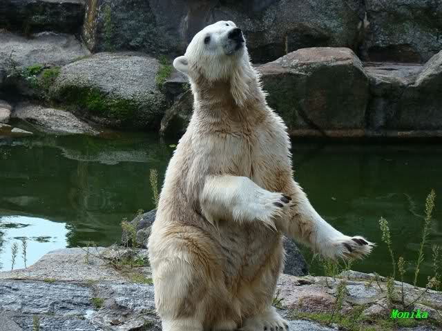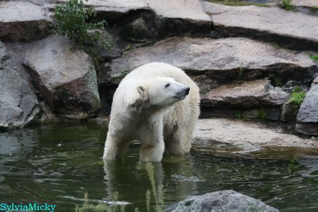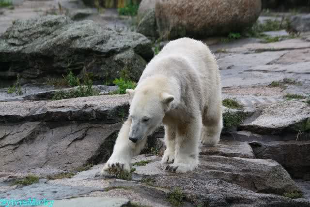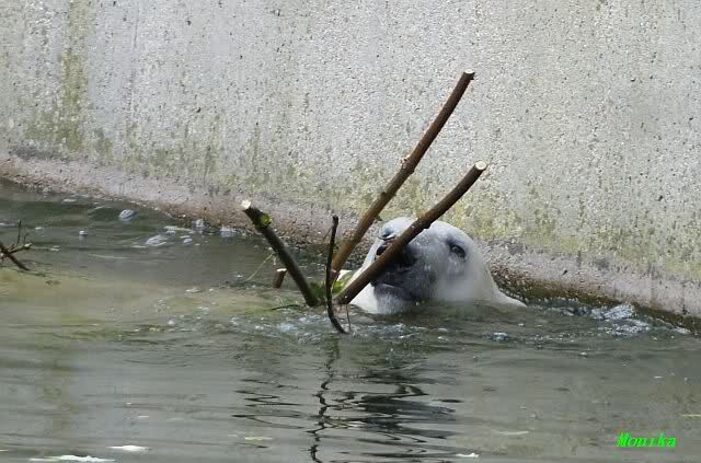 Habe gerade die Mitteilung bekommen, dass Knut heute bei der Fütterung das erste Mal auf der kleinen Insel, wo Lars immer stand, auch Männchen gemacht hat.