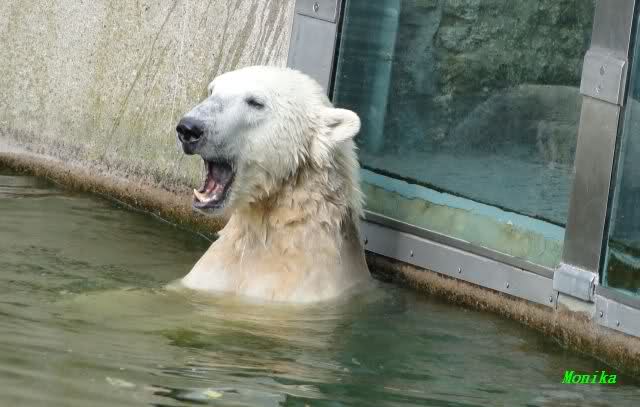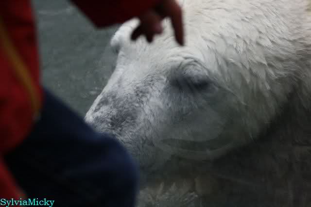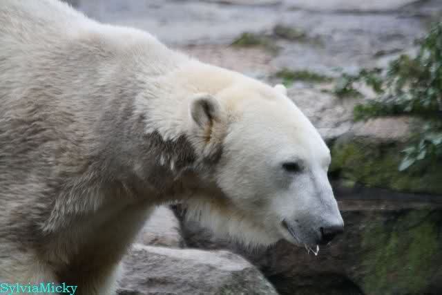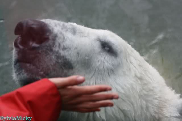 Very important note from Sylvia: some people are knocking on the glass with rings and hands and so, and as in former times, these noises make Knuti jump high again (what kind of idiots!!!). Maybe, the Zoo Management should install a sign with the request “please do not knock on the glass”, both in English and German.