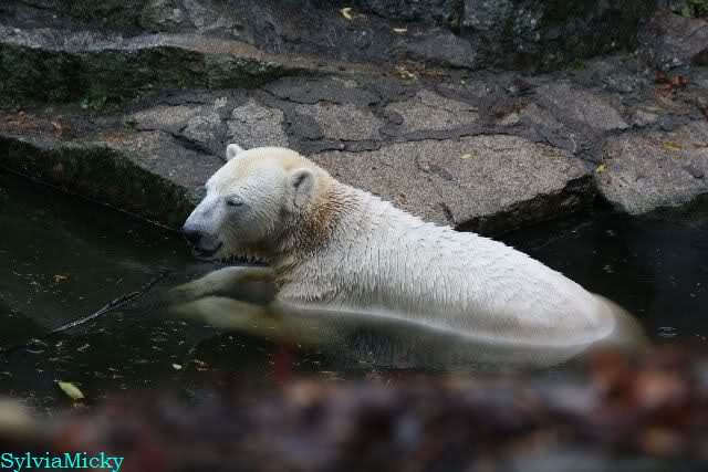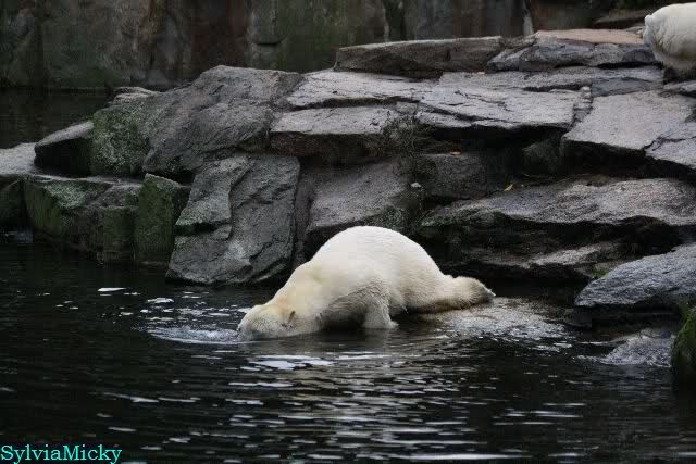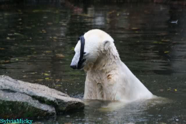 Dann trieb sie wie ein U-Boot lange durchs Wasser, und verharrte sehr lange auf einer Stelle an der rechten Ecke. Ich glaube sie wunderte sich wo Knut ist.