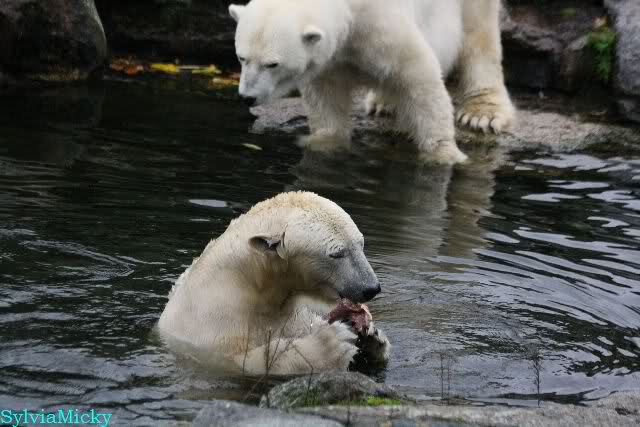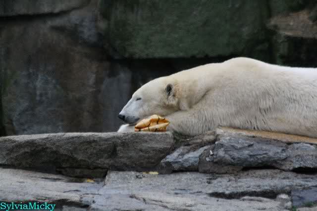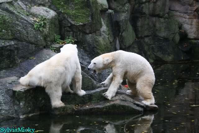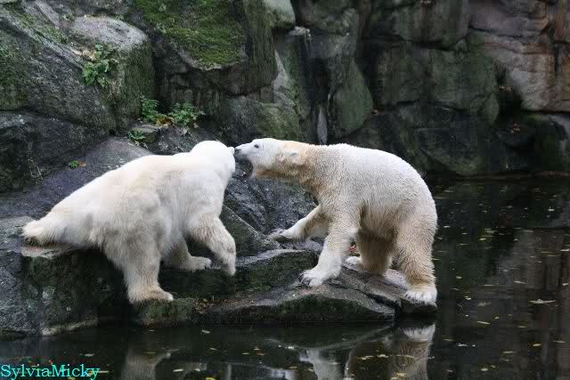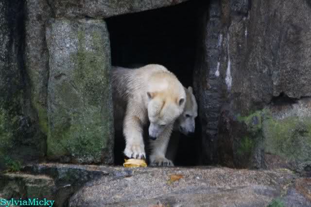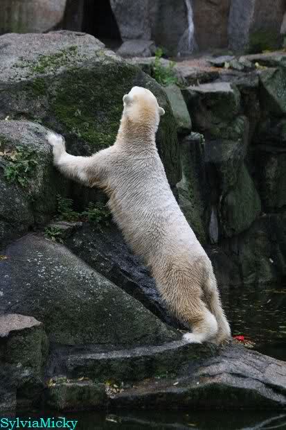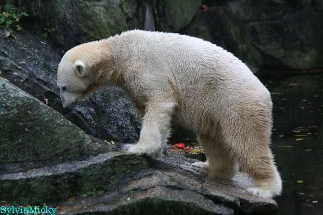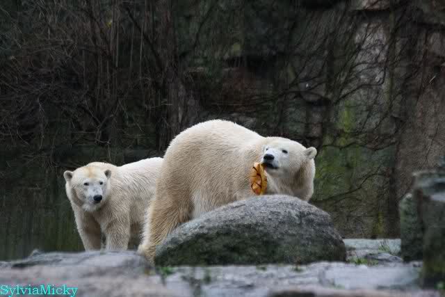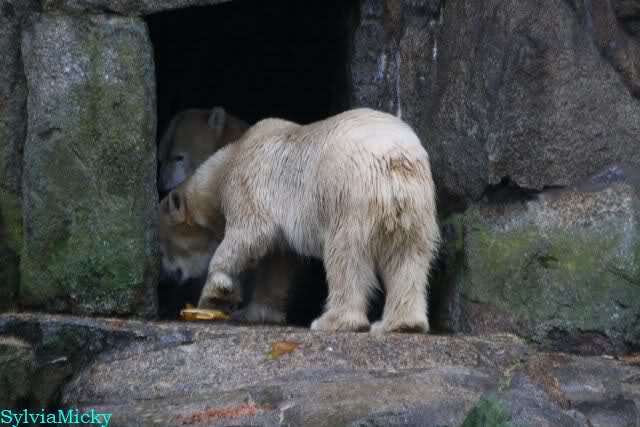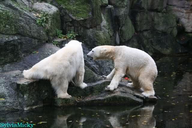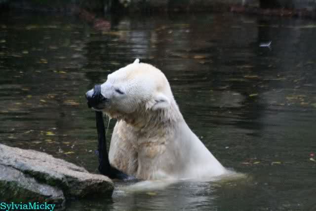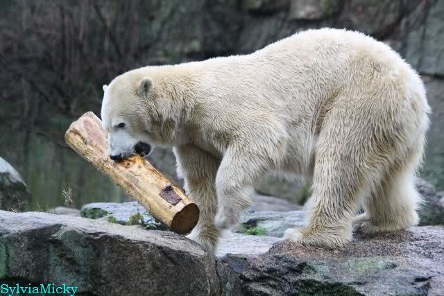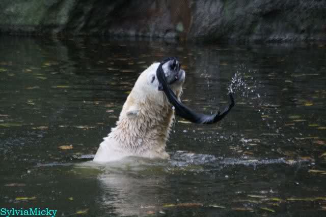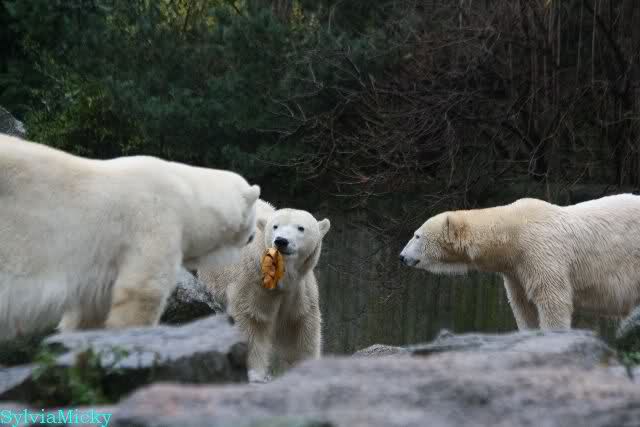 Ich bin der festen Überzeugung, wenn die Bären Beschäftigung hätten, wäre für Knut die Eingewöhnung leichter. Er hätte etwas zum spielen, siehe z.B. die Bilder mit der Kordel.