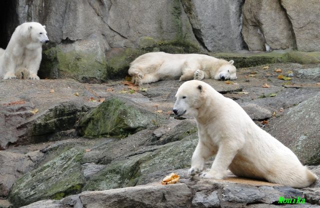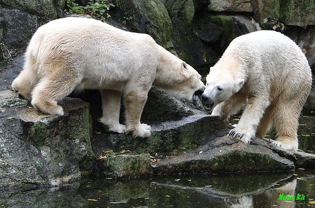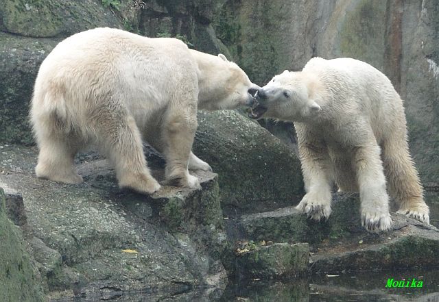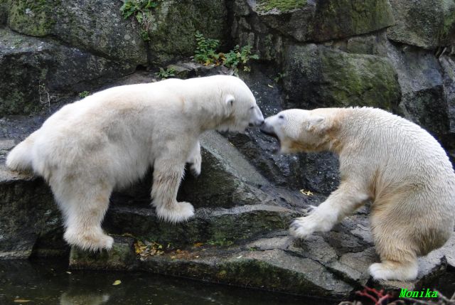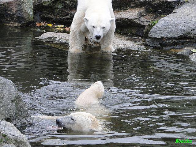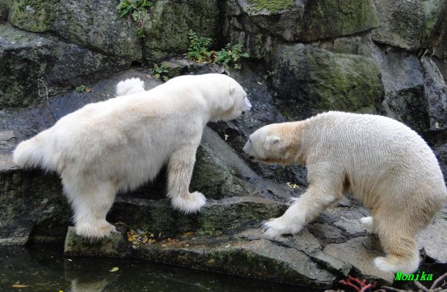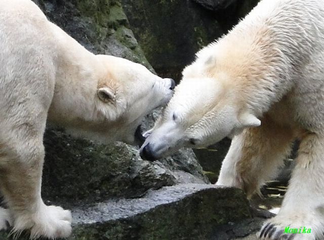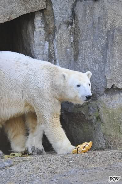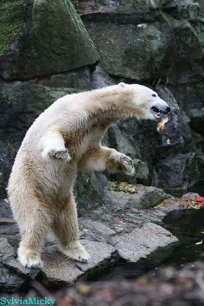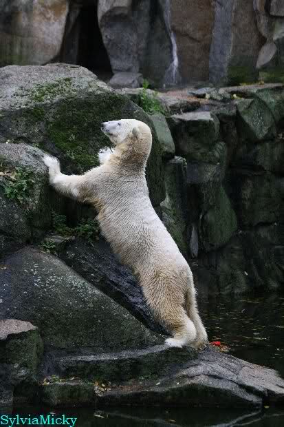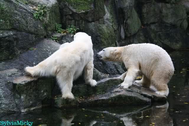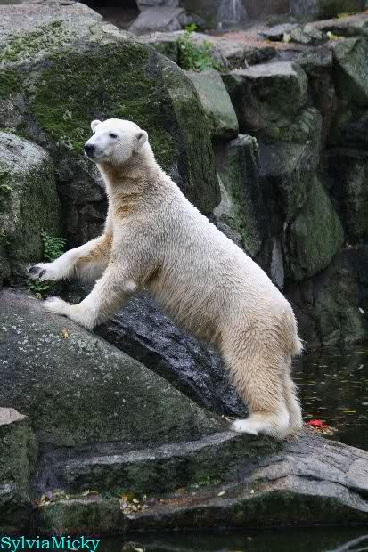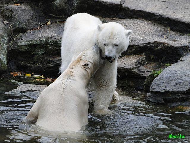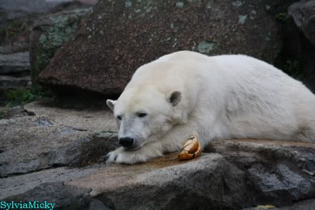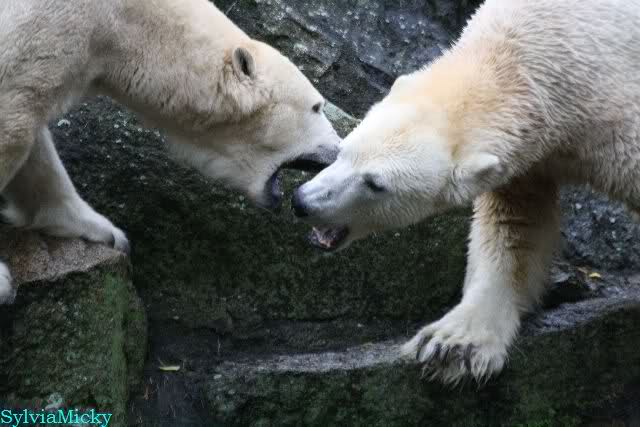 Ich bin der festen Überzeugung, wenn die Bären Beschäftigung hätten, wäre für Knut die Eingewöhnung leichter. Er hätte etwas zum spielen, siehe z.B. die Bilder mit der Kordel.