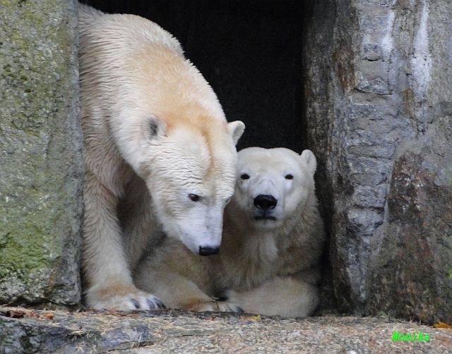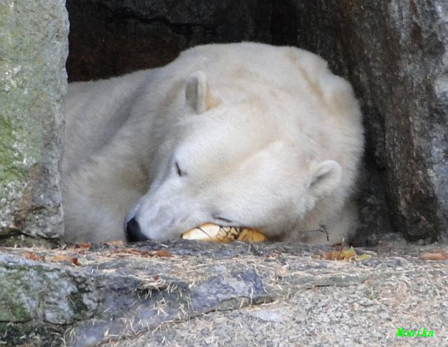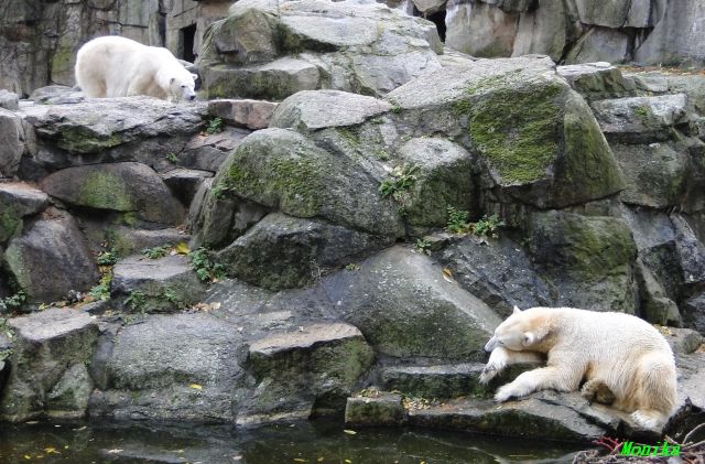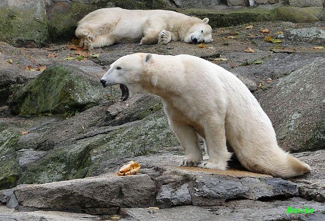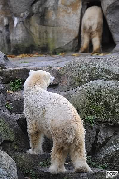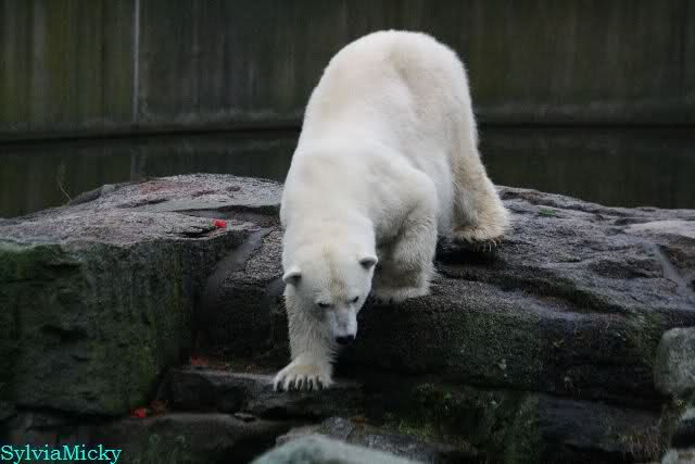 Als ich am frühen Nachmittag den Zoo verließ, lief Kati immer noch über die Anlage und Knut lag noch oben an der Mauer.
