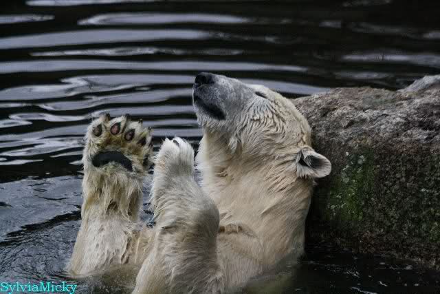 Danke allen für die aktuellen Fotos. Wieso hat Knut derart lange Krallen? Wahrscheinlich wurden sie damals von Thomas Doerflein gestutzt und nun kümmert sich niemand darum? Hätte man das nicht während der Narkose bei seinem Umzug machen können? Dann wäre die jedenfalls zu etwas nütze gewesen.