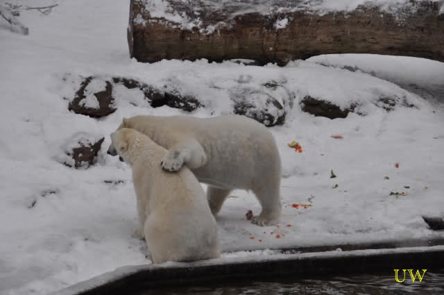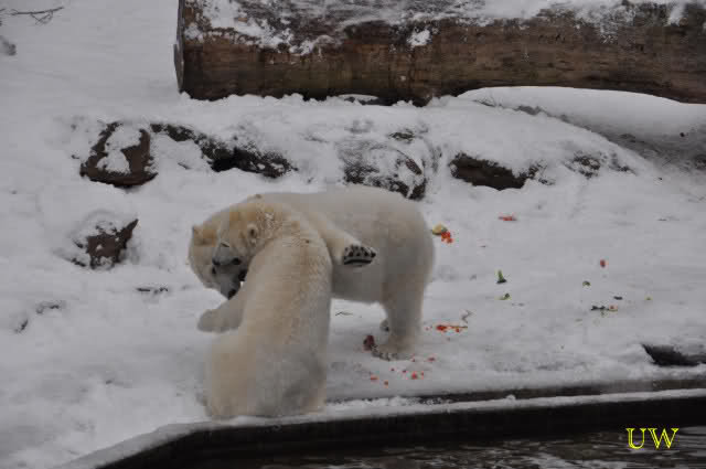 Interessant war, dass bei der Fütterung (hier wird seit einiger Zeit viel über die beiden Bärchen und auch Vera erklärt sowie auf die Folgen des Klimawandels für die Eisbären hingewiesen), nicht mehr von Mitte Februar die Rede war, dass die beiden weg kommen, sondern als Termin wurde "Frühjahr" genannt.