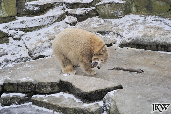 nachgereicht am Montag. Danke Jessie für die schönen Fotos von unserem Polar Bärchen. Knut am Tag nach dem Blitzeis. Das richtige Wetter für ihn.