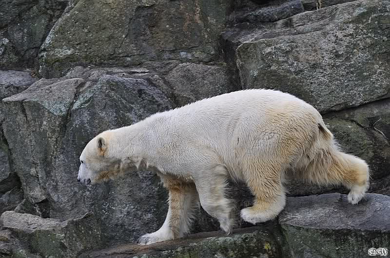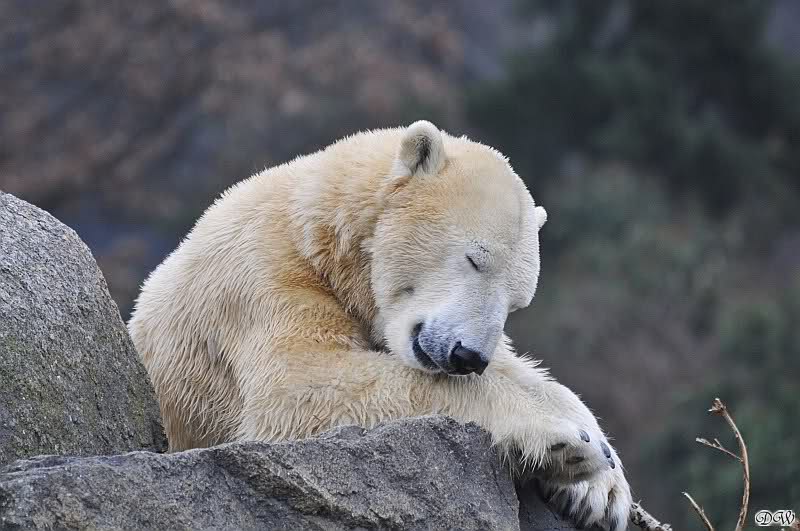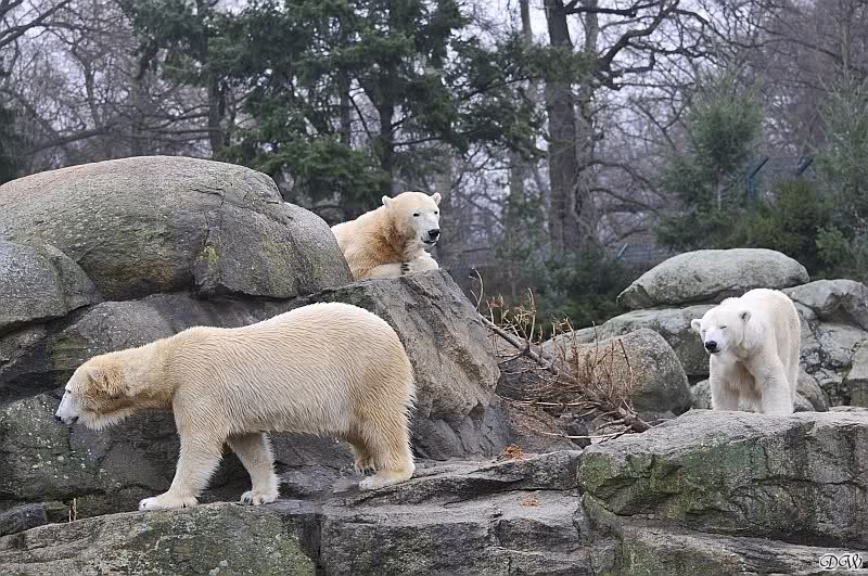 Es war ein grauenhaft kalter Tag heute. Vier Grad und eisiger Wind. Nachmittags schienen auch die Bären nicht so begeistert zu sein und schauten schon ab 13.30 ab und zu nach, ob sich die Tür nicht bald öffnen würde.