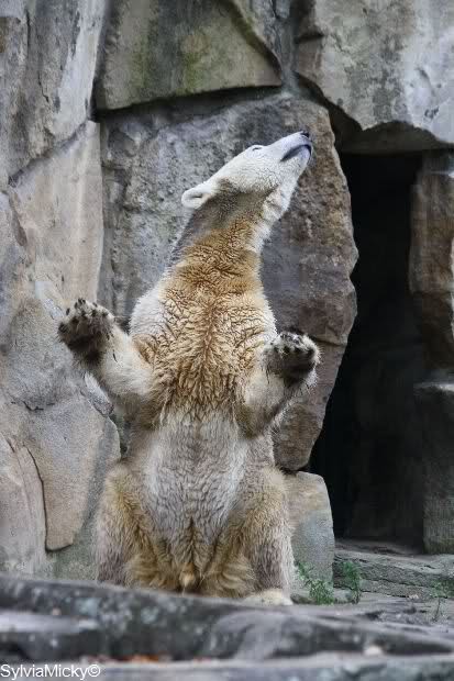 Es war heute sehr, sehr voll im Zoo. Bei der Fütterung standen die Besucher in Fünfer-Reihen bei Knut und bei den Braunbären in Dreier-Reihen.