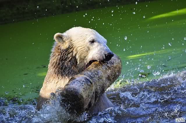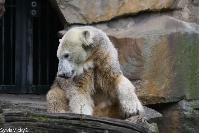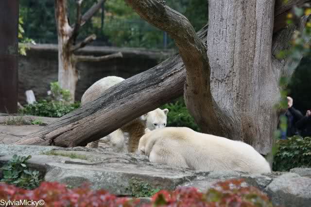 Es war ein schöner Tag heute. Der Eisbär Knut war, wie schon morgens glücklich und aufgeregt von SpreewaldMarion berichtet (Gisela hat den Namen versehentlich nicht erwähnt) wie ausgewechselt. Es war so schön ihn wieder so zu sehen. Monika und Sylvia haben schon alles erzählt und ihre Bilder gezeigt. Knut wieder gelöst spielen zu sehen, beide zusammen im Wasser und später beide schlafend auf der Anlage, das war einfach toll anzusehen. Es geht voran mit den beiden Eisbären.
