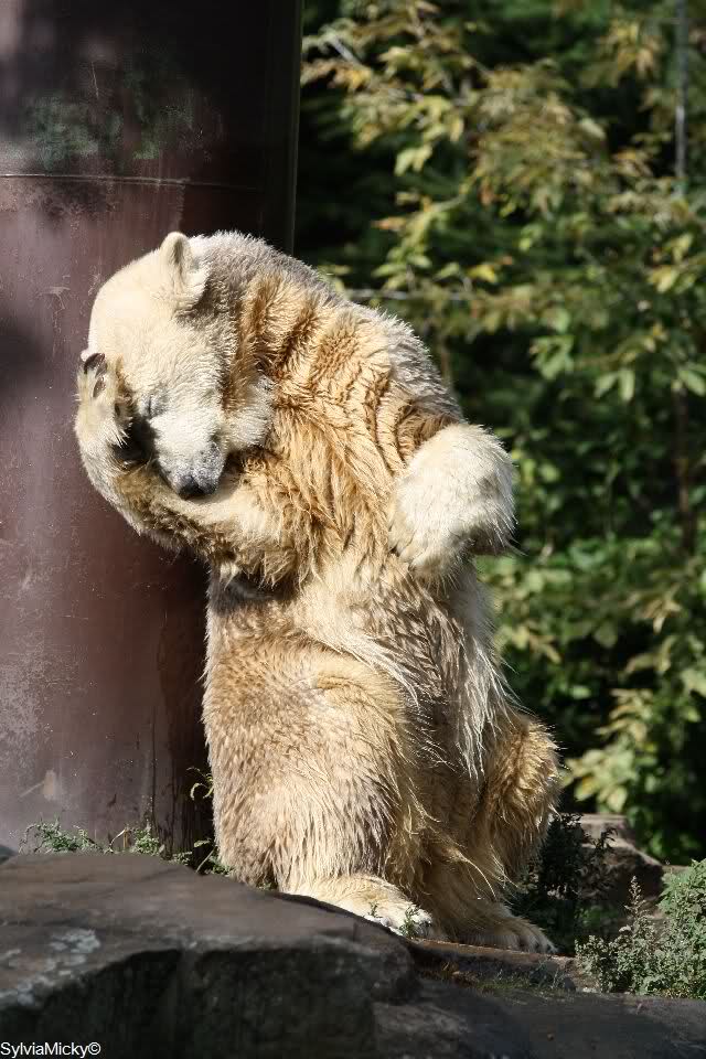 Das sieht so aus, als würde Knut sagen, Papi, ich will zu Dir, wo bist Du? Was ist denn das für ein Vulkan, der hier ausgebrochen ist? Die Frau hat meinen Tagesablauf total durcheinander gebracht. Was soll ich mit der denn anfangen?