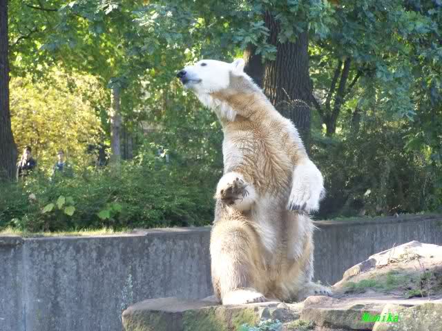 Was war das denn heute? Gianna hat ja den armen Knut förmlich in die Flucht geblasen oder gebrüllt? Wenn das ein Bärenkuss war, na danke. Da kann ich seine Schnute gut verstehen. Armer Knut, ich hoffe Gianna jagt ihm keinen Schreck für's Leben ein.