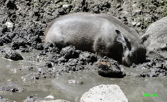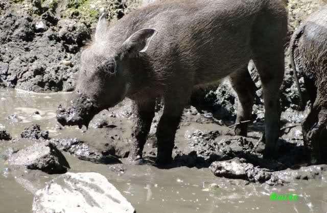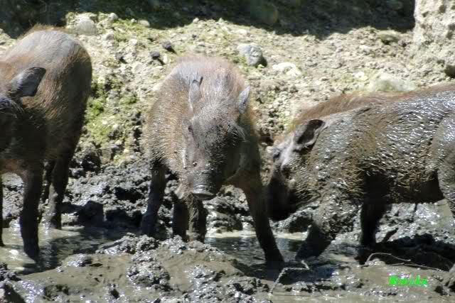 Die kleinen Warzenschweine freuten sich über ein Schlammbad.
