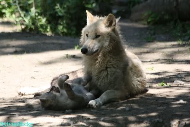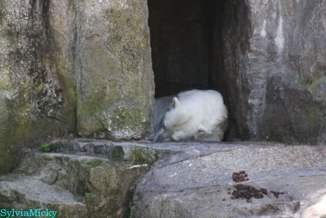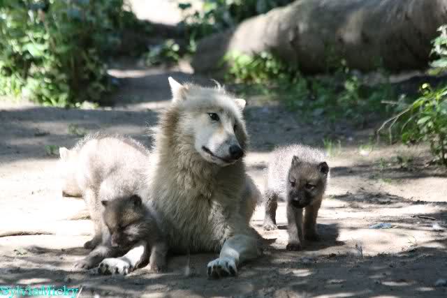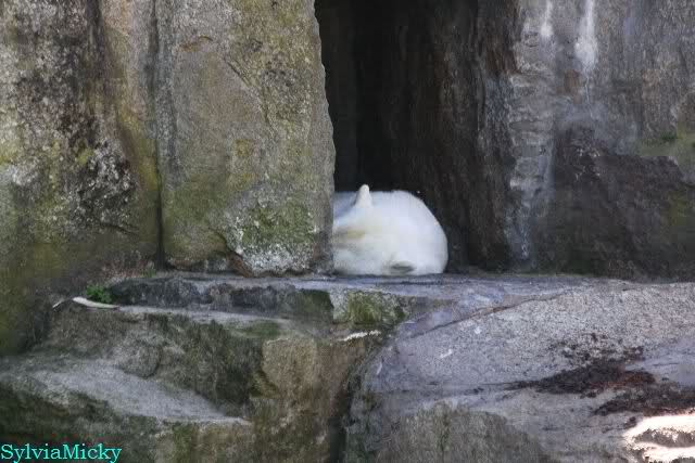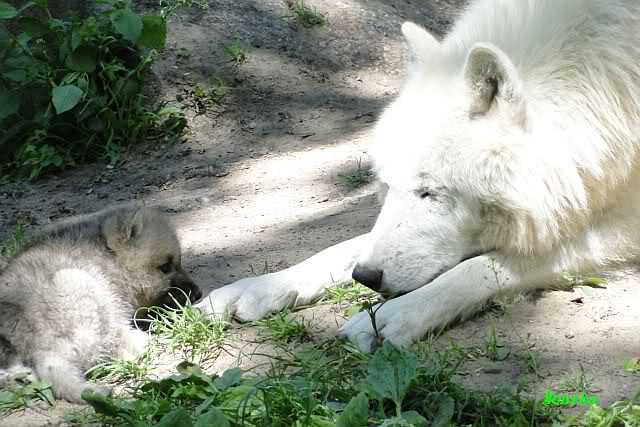 Auch ich war noch kurz im Zoo am späten Nachmittag. Knut und Giovanna schliefen, also ging es zu den Polarwölfen. Auch die schliefen, die Kleinen waren irgendwo. Aber die Geduld des Wartens wurde belohnt und plötzlich erschienen die Kleinen Wölfe auf der Bildfläche und dann kam Leben in Familie Wolf.
