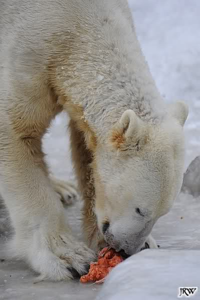 Als die Pfleger mit dem Futter kamen bin ich wieder zu Knut, da ich dachte das Futter lenkt von dem Vogel ab. So war es auch.