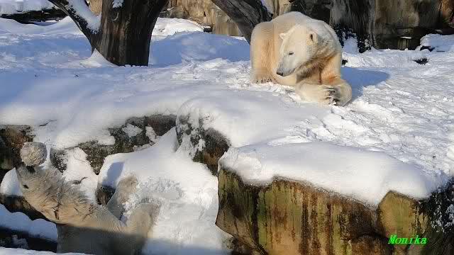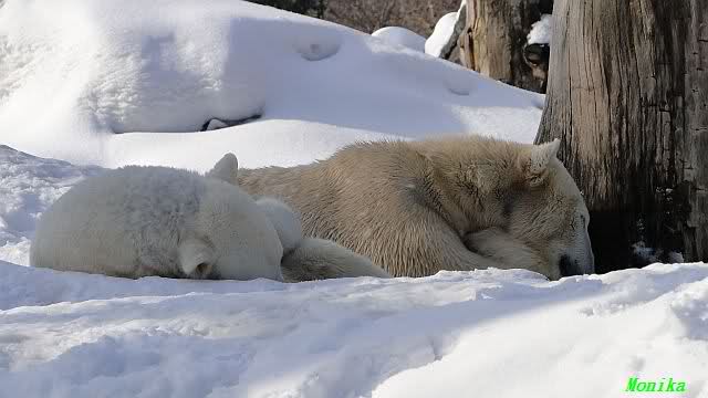 Heute Vormittag bei strahlenden Sonnenschein und sehr glatten Straßen lagen beide Bären auf der Anlage und schliefen.