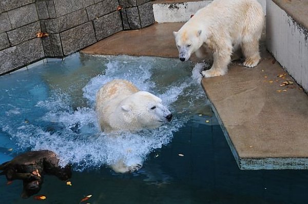 Dann muss ein Eisbärmann schon mal einen Haken schlagen und sich ins nasse Milieu stürzen